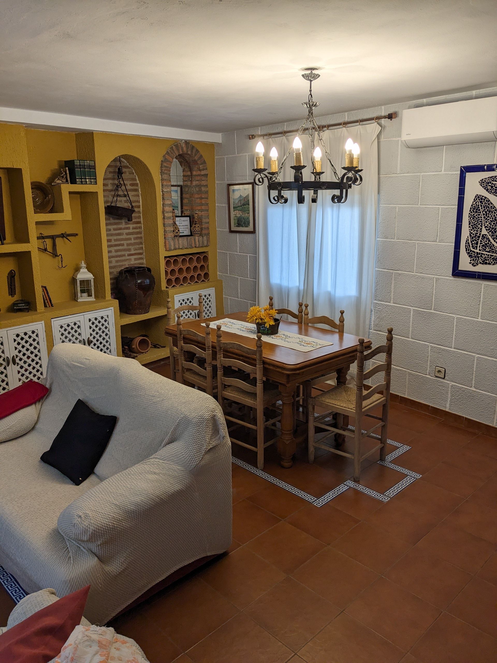 - La planta baja dispone de un amplio salón comedor con chimenea y aire acondicionado, cocina independiente, aseo y patio ajardinado.